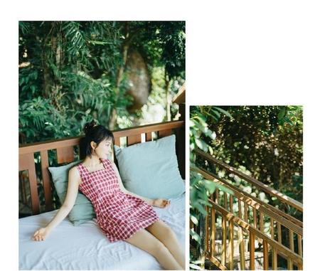 日常小清新,穿的是方格的小裙子,减龄又清新。