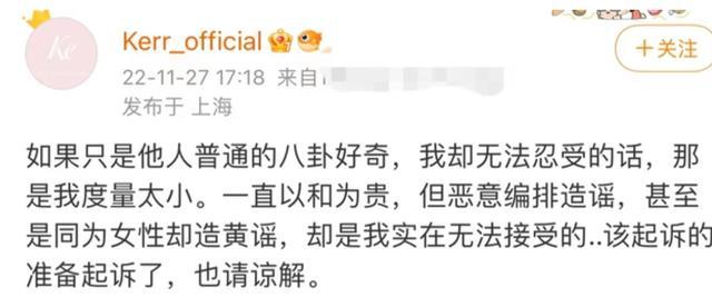 事实上,去年 11 月底,叶珂曾发文怒斥造谣者,还表示很多人对她造黄谣,让她忍无可忍。