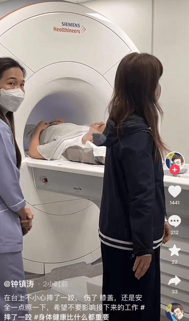 钟镇涛在医院里打扮得非常轻松,在医护人员的指导下静静地躺在 CT 机上接受检查,但他没有在视频中透露自己的病情。