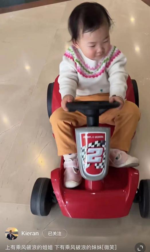 算起来这应该是王珠宝小朋友的第一台座驾,是爸爸王昀佳新买给她的,当时王昀佳还调侃自己说:" 第一次给女生买跑车,也不知道喜欢不喜欢 "。王昀佳牵着女儿小手带女儿,画面温馨有爱十足。现在看来,王珠宝很喜欢爸爸送她的 " 跑车 " 呢。