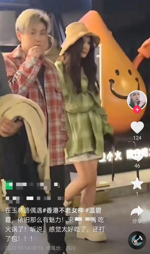 10 月 14 日,有网友在社交平台上发文透露自己在四川玉林路偶遇知名港星温碧霞吃火锅,并晒出了现场视频,引起热议。