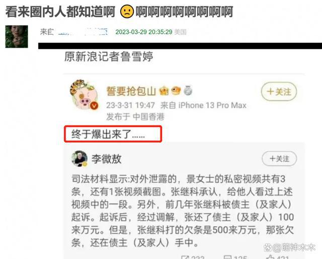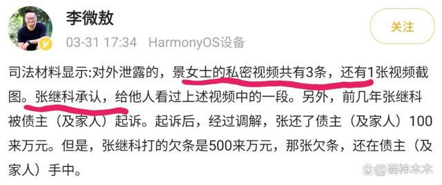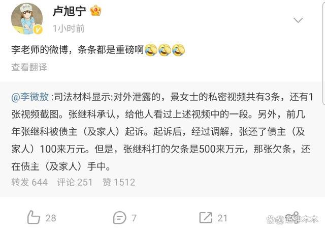 在法律博主李微敖曝张继科欠债 500 万,并且将景甜私人视频传阅给他人情况属实后,业内人士也陆续下场,过往诸多爆料也再次被网友翻出。