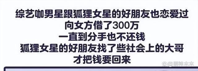 在狗仔漫画中,综艺咖男星向洁癖男星借了 1000 万,还钱的时候不痛快引发圈内吐槽。网友称这个瓜在 2021 年就被曝光过,当时说法是田亮借出去了 1000 万,景甜帮忙还了不少。
