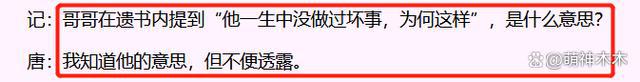 具体原因唐鹤德在采访中称自己不方便透露,而关于遗书中的 " 一生没做过坏事,为何这样 ",唐鹤德称自己能懂张国荣的意思,但不方便说。