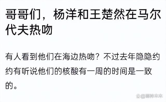 从杨洋好友墨镜的反光还有王楚然照片的种种细节中,网友也确认了,当时两人确实同在马尔代夫,不过两人对这段恋情绯闻都没有做出回应。