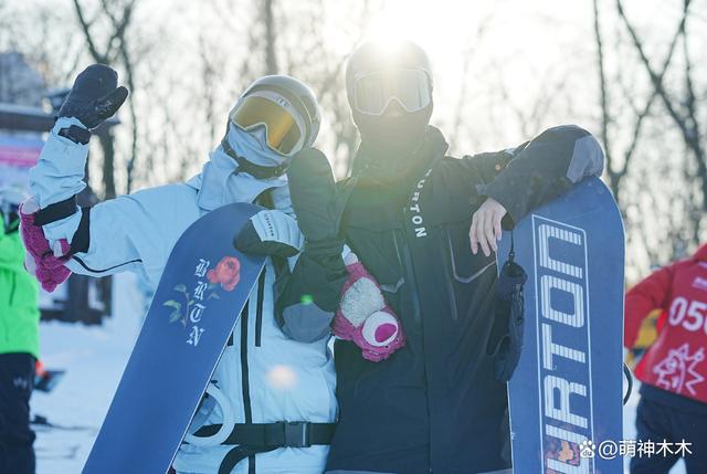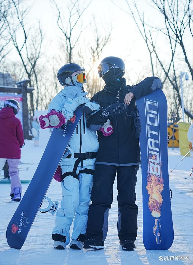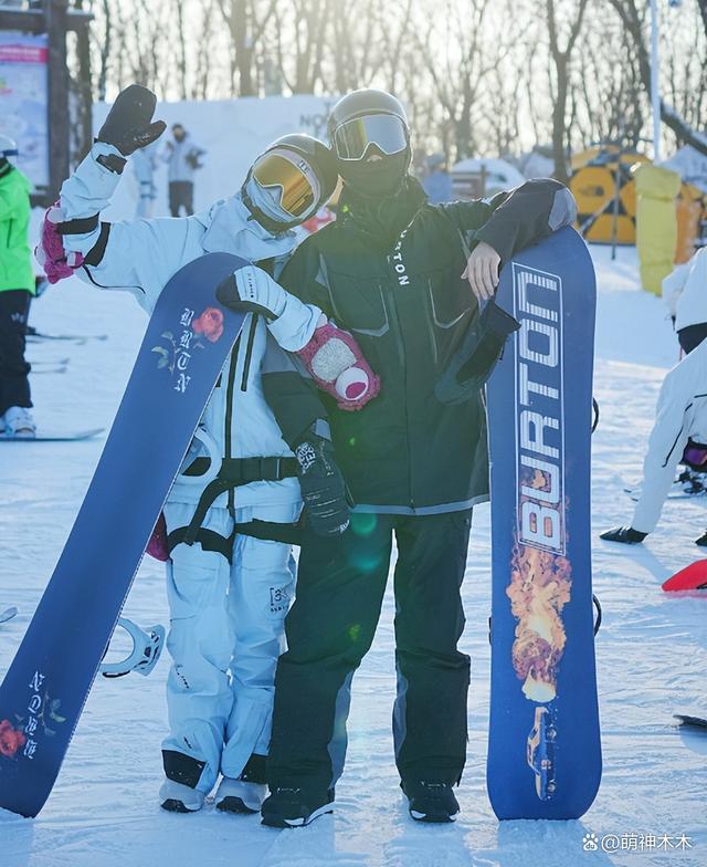 于是这位站姐疑似脱粉回踩,曝光了一组滑雪合照并配文 " 尊重祝福 "。照片中两人互动亲密,女方靠在男方肩膀甜蜜贴贴,一起对着镜头打招呼,宛如热恋中的小情侣。