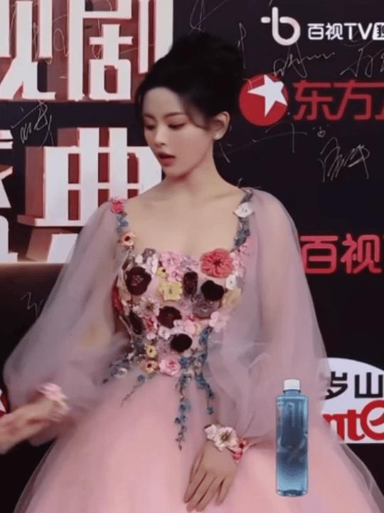 王珞丹的衣服看起普通,实则有不少小心机,高开叉尽显大长腿,热搜上说王珞丹的裙子有 10 斤重,在现场她还把裙子掀了起来展示。