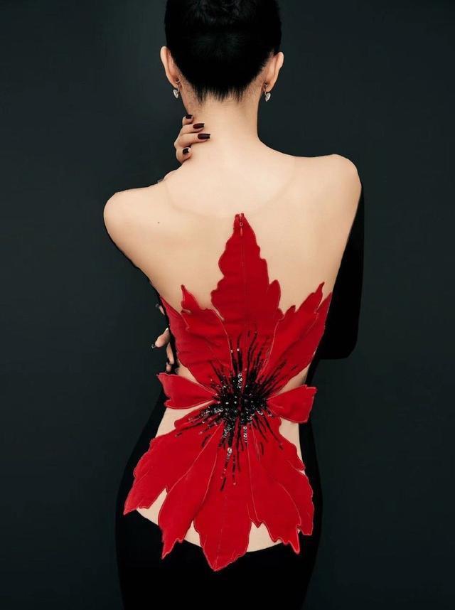 之前童谣晒出的精修图里,礼服背后有一朵大红花,完美地勾勒出了她的腰线,不过这次红毯,比较遗憾的没有给到童谣背部的镜头。