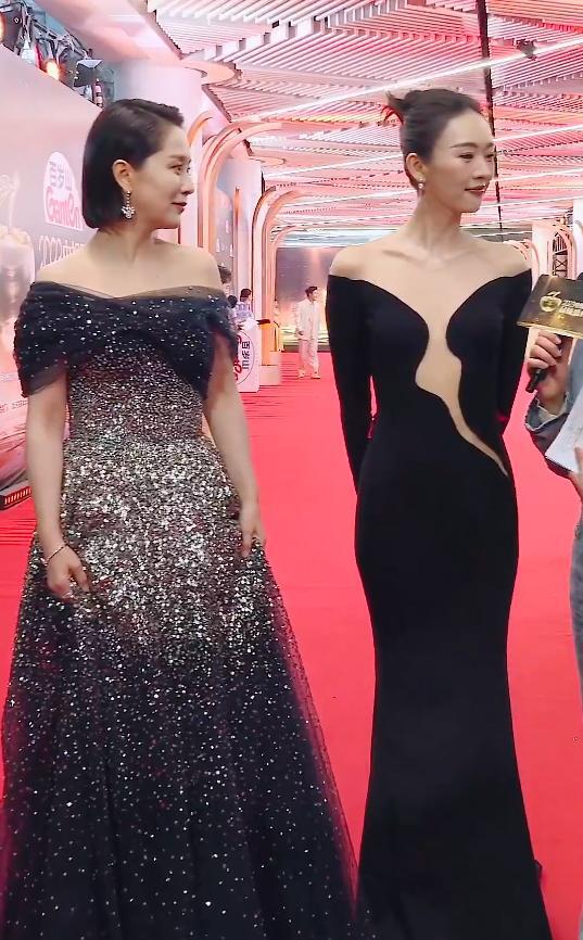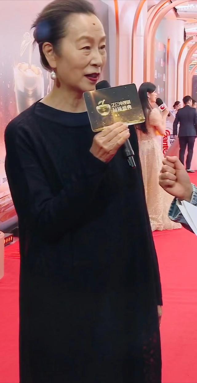 奚美娟老师走红毯的时候,也是非常低调,一身黑色的长裙,头发简单地盘起来,但光是站在那儿,就气场格外强大。