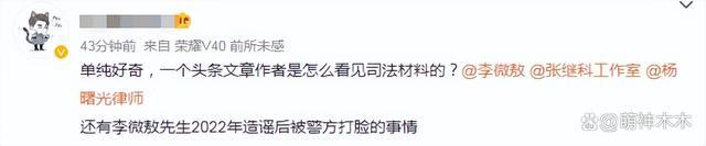 这则爆料有具体细节,爆料人又是热门法律博主,很多网友看后一时也摸不清到底是真是假,不知他是真有料,还是蹭热度。据悉,该大 V 并不是普通的自媒体作者,还是一名记者,从 2003 年开始跑新闻,是《经济观察报》的首席记者,曾经获得过亚洲出版业协会卓越新闻奖,还是湖南财政经济学院客座教授。