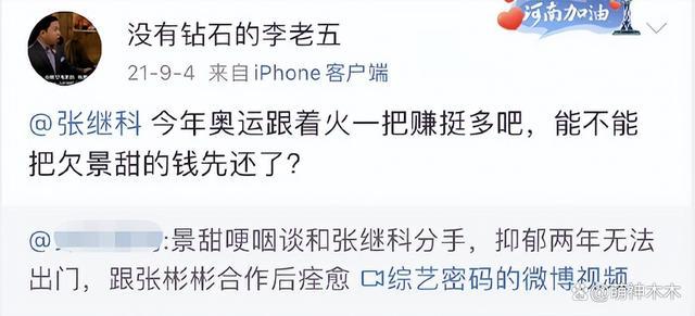 - 张继科欠债风波升级!法律博主曝景甜 3 条视频被外泄,欠债主 500 万