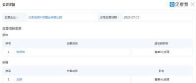 - 刘晔新任北京龙湖中佰置业董事长及经理职务
