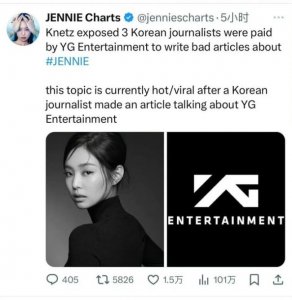 - 韩网曝YG请记者写Jennie负面新闻 网友:单飞了依旧不放过?!