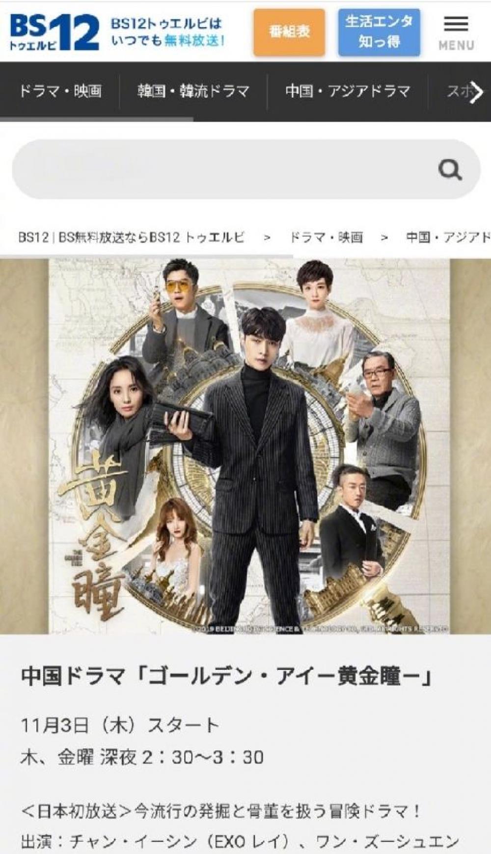 国产剧走出国门!张艺兴《黄金瞳》将在日本播出