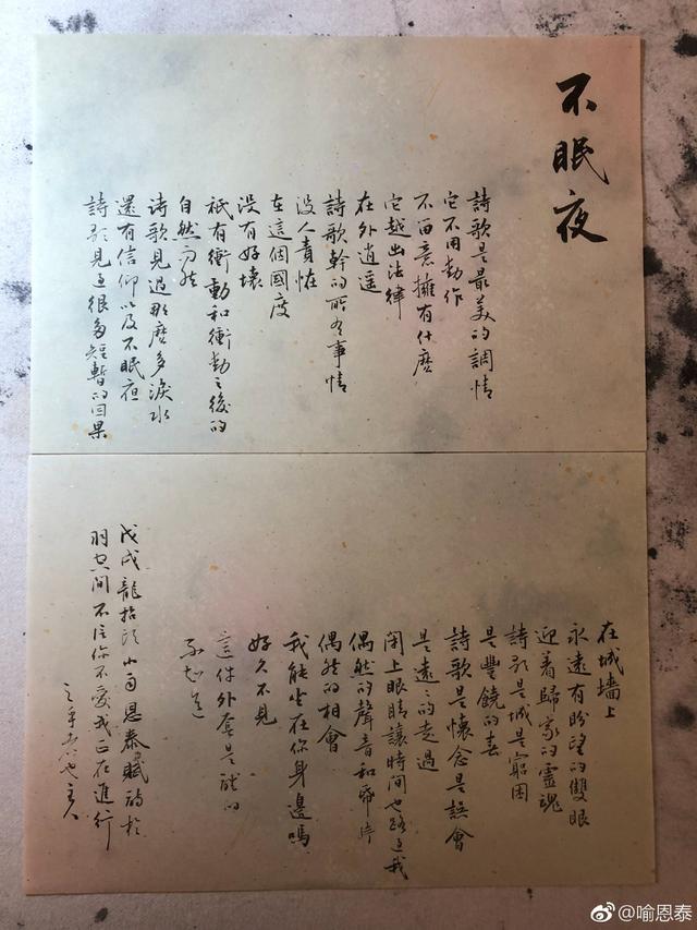 沉沉浮浮中,喻恩泰的画风渐变,在他的微博里,每天是慵懒的人生,不是美文,便是书法,偶尔还有很小资很文青范的小诗。