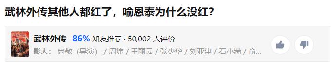 2019年,某问答平台的一个热门问题把喻恩泰送上了热搜:“《武林外传》其他人都红了,为什么吕秀才没红。”