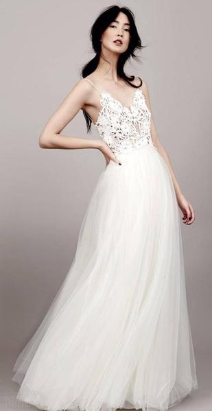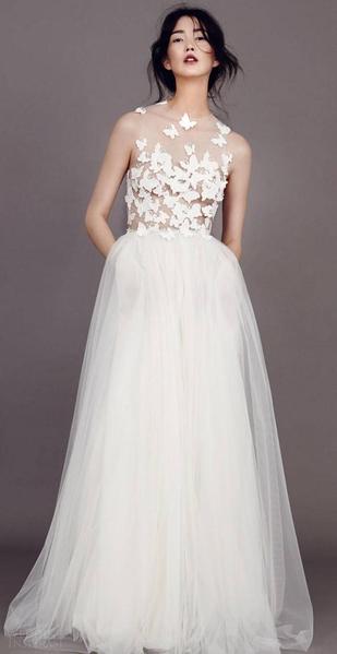 Kaviar Gauche这是一个德国的品牌,这些婚纱以蝴蝶为灵感,充满了灵气和仙气,但是简洁的设计可能会让婚纱看起来不那么像婚纱(不是以往的蓬蓬裙之类的设计),他的婚纱是很精致、轻盈的感觉。
