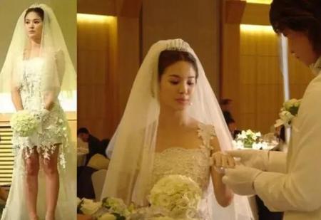女神宋慧乔嫁给了男神宋仲基,来了个双宋联合。戏外的乔妹结婚终于穿上了属于自己的婚纱,她的这件婚纱是Dior的,但我个人觉得这件婚纱并没有她在《那年冬天风在吹》中的婚纱好看,你们觉得呢?下面下来一张结婚时的婚纱图,然后我们来数数戏中的乔妹穿过的婚纱吧~