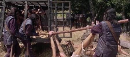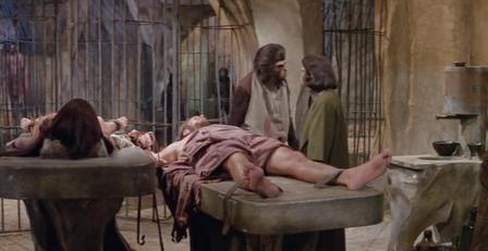 讽刺和可怕的是,被捕的人类被关在牢笼里,这些浑身长满毛的猩猩居然拿人类做实验,脑部研究、行为分析、手术解剖。