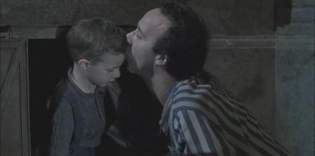记忆最深的画面就是最后父亲和孩子差点被发现时,父亲为了保护孩子,自己跳出暴露自己,还假装演戏。那种被发现的害怕担心,被抓住的窘迫,必死无疑的归路,不知道孩子今后如何的忧虑全都隐藏在滑稽搞笑的表演中。