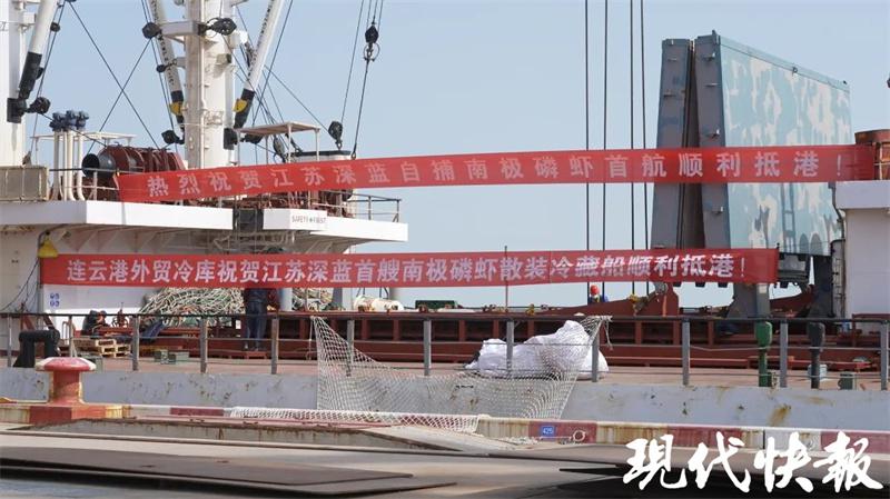 现代快报讯(通讯员 王禹善 记者 王晓宇)4 月 12 日 7 时,一艘载着 1500 吨南极磷虾虾粉的爱琴海轮驶入连云港徐圩港 128 号泊位,这是 " 深蓝号 " 远洋捕捞加工船首批渔获回运。现代快报记者了解到,南极磷虾富含海洋磷脂、虾青素、蛋白质等,被誉为 " 人类蛋白资源库 ",此次经过初加工的虾粉即将变现功能食品、海洋保健品等高值产品,这也意味着连云港市连云区海洋渔业产业从传统的养殖捕捞向深远海迈出重要一步。