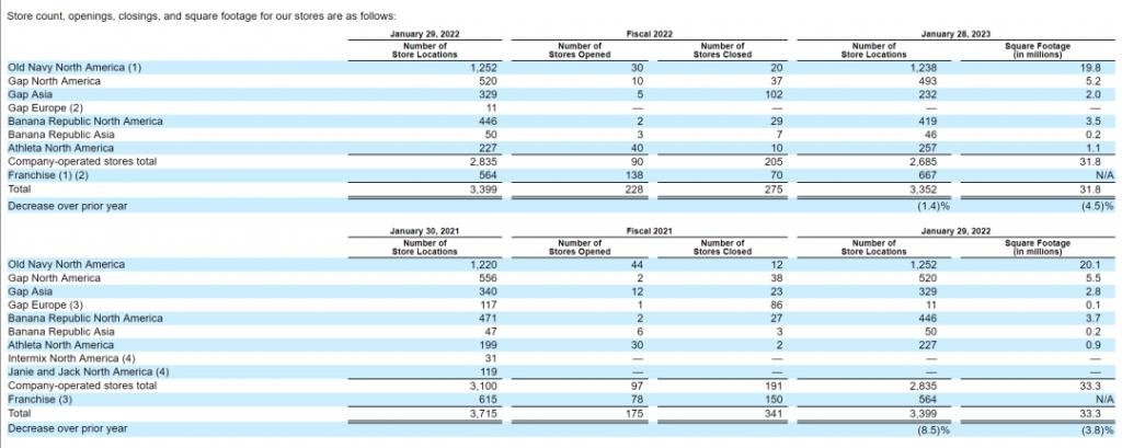 GAP 发布了对 2023 财年的温和展望。该公司计划关闭 50 至 55 家 GAP 和 Banana Republic 门店,并开设 30 至 35 家 athlete 和 Old Navy 门店。该公司还预计,与上一财年相比,第一季度净销售额将下降中个位数范围,并预计 2023 财年净销售额也将下降中个位数范围。不过,GAP 预计今年第一季度和全年毛利率将出现增长。