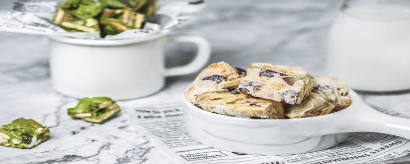 跟雪花酥类似的是牛轧糖,牛轧糖是由烤果仁和蜜饯制成的糖果,分为软硬两种类型,软的是以蛋白制成的白牛轧糖,硬的是由焦糖制成的牛轧糖,牛轧糖有着韧性、脆性和砂性的三个特点,所以牛轧糖吃起来甜而不腻,口感丰富,令人回味无穷。