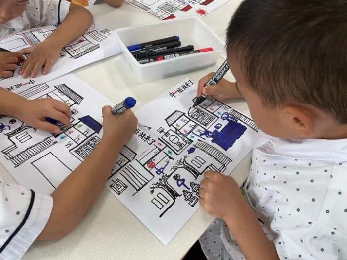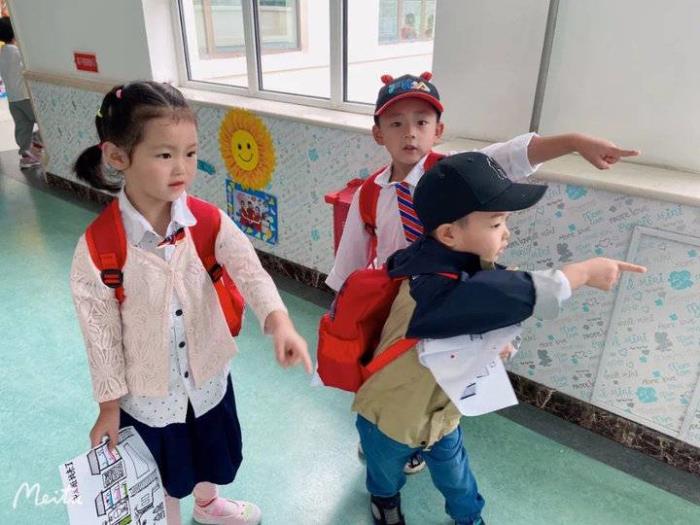 手拿幼儿园“地图”的中班小朋友,