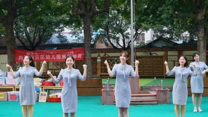 朝气满满的老师们也精心准备了舞蹈,祝愿河南灾区的小朋友们振作起来,用积极乐观的心态面对生活,也祝愿我们新的学期茁壮成长,快乐起航!