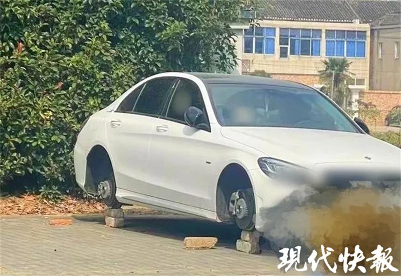 △停在派出所奔驰车被轮胎被卸 通讯员供图