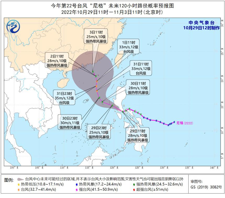 据中国气象局中央气象台 29 日 11 时," 尼格 " 中心位置北纬 13.7 度、东经 121.7 度;强度等级为强热带风暴;最大风力卫 10 级,28 米 / 秒(约 101 公里 / 小时)。