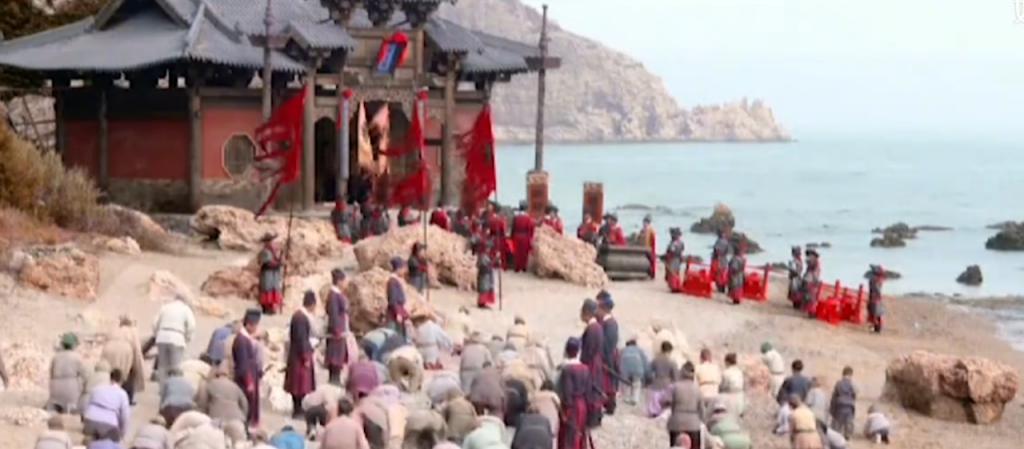 《蓬莱八仙》里头的龙王没给常州下雨,一开始人们还虔诚朝拜龙王庙。
