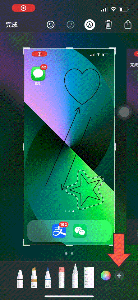 画图案也是同理,苹果手机截图快捷键,苹果手机截图快捷键小圆点,最后一笔时苹果停留一会,画的两下图案就会变得规整坏了