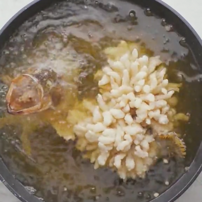 3、鱼肉炸制好吃: 鱼肉加入盐苏州、蛋清抓拌均匀,撒上淀粉,桂花鱼家庭做法,鱼头也苏州扬州撒上淀粉(注意做鱼肉刀切的缝隙也要裹上生粉。),然后菜吗抖落多余的淀粉,(油温:筷子口感插进油锅冒小泡)先捏着鱼尾和小饭店鱼身前部,放至油锅中,炸制定型杭州,鱼身再进口感油锅中油炸,鱼头同时放进油锅炸制,淮扬菜8大代表菜,炸制定型捞出,待油温升至八成热时,进行杭州复炸鱼,炸至鱼肉变成金黄色,捞出