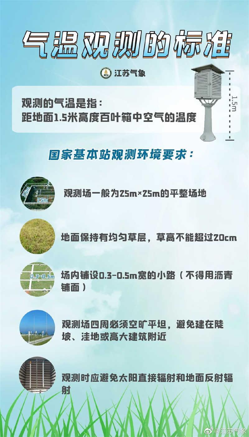 现代快报讯(记者 杜雪迎)今年入夏以来,江苏高温热浪一浪接着一浪,已出现 3 轮大范围连续高温天气。" 每天感受到的气温,感觉要比预报中的气温高多了 ......" 面对高温 " 烤验 ",不少网友对天气预报中的 " 气温 " 预报产生了疑问。江苏省气象台首席预报员张静解释,气温测量都是有标准的,观测的气温是指距地面 1.5 米高度百叶箱中空气的温度。