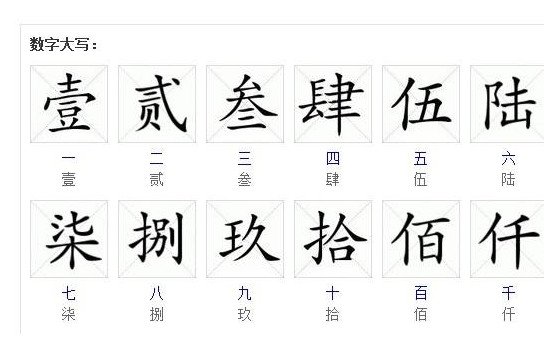这就是数字大写怎么写0到10的正确方式了。其实在这后面还有百、千、万,它们分别的大写方式是:佰、仟、万。很多人可能不明白为什么要用这么复杂的大写方法进行替代,其实这是为了防止有人涂改上面的数字,毕竟一、二这样的数字随便加上一笔就会变成其它数字了,这样的话很容易让账目中出现问题,以前也有很多人利用这个进行贪污,这在明朝的时候十分严重。