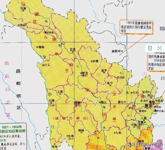 1955年,西康省撤销,撤销西康省藏族自治区改设四川省甘孜藏族自治州,康定为州府驻地,辖21个县。