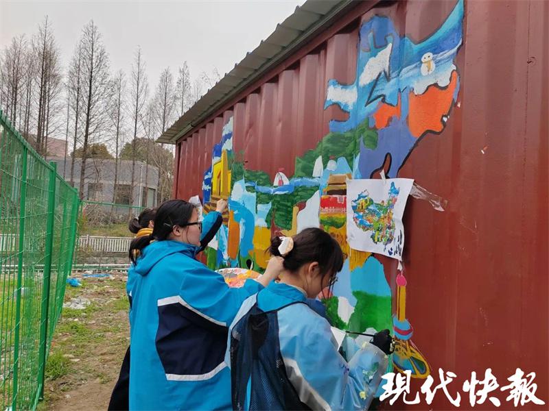 力行园的入口处摆放着一个农具仓库,原本这是一个集装箱,几个爱好绘画的孩子们集思广益,用画笔改造集装箱,绘出一面艺术墙,展现了一片丰收的景象,改造后的农具仓库格外醒目,与力行园也更加搭配了。
