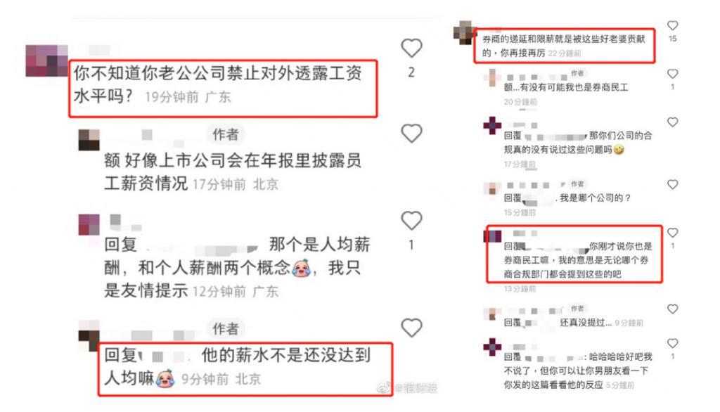 被网友提醒 " 你不知道你老公公司禁止对外透露工资水平吗 " 后,这位 " 炫薪娇妻 " 还头铁回复道," 他的薪水不是还没达到人均嘛 "。