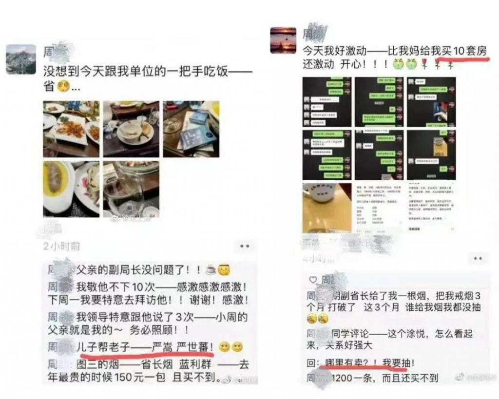 王澄澄引发的争议还未消散,在朋友圈炫富秀权的周劼又来夺人眼球。年仅 28 岁的 " 周公子 ",戴欧米茄手表,系 LV 皮带,喝 20 万一斤的白毫银针,还有一位 " 怕我吹空调冷,帮我加挡风板 " 的办公室主任。
