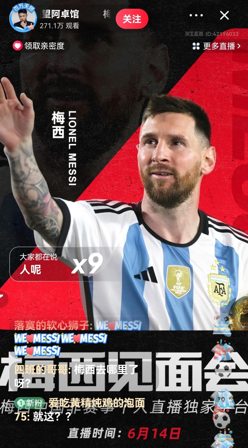 刚刚,梅西亮相淘宝直播间!数百万粉丝涌入,有人却不开心了……