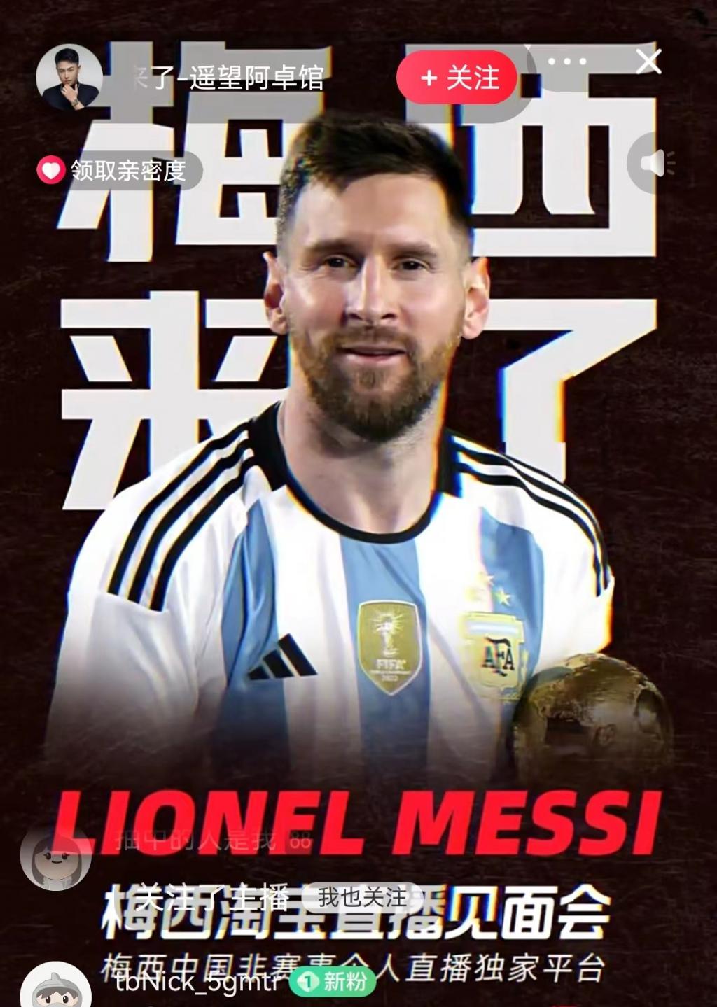 据了解,本场直播是梅西首次真人现场在直播间与粉丝互动,现场并不带货。
