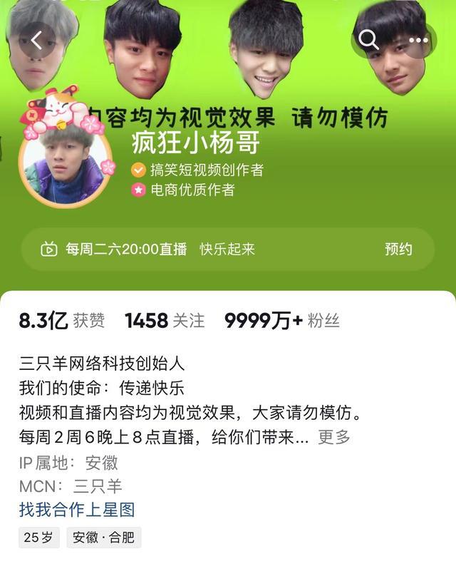 提起 " 疯狂小杨哥 ",大家应该都不陌生,抖音头部短视频创作达人,2015 正式开始短视频创作,凭借着创作喜剧短视频内容获得大家喜爱。目前,抖音账号 " 疯狂小杨哥 " 的实际粉丝数量已经突破 1 亿,成为抖音首个粉丝过亿的达人主播。此前,抖音并无粉丝破亿的个人账号,机构账号中人民日报和央视新闻分别达到 1.6 亿和 1.5 亿的粉丝量。