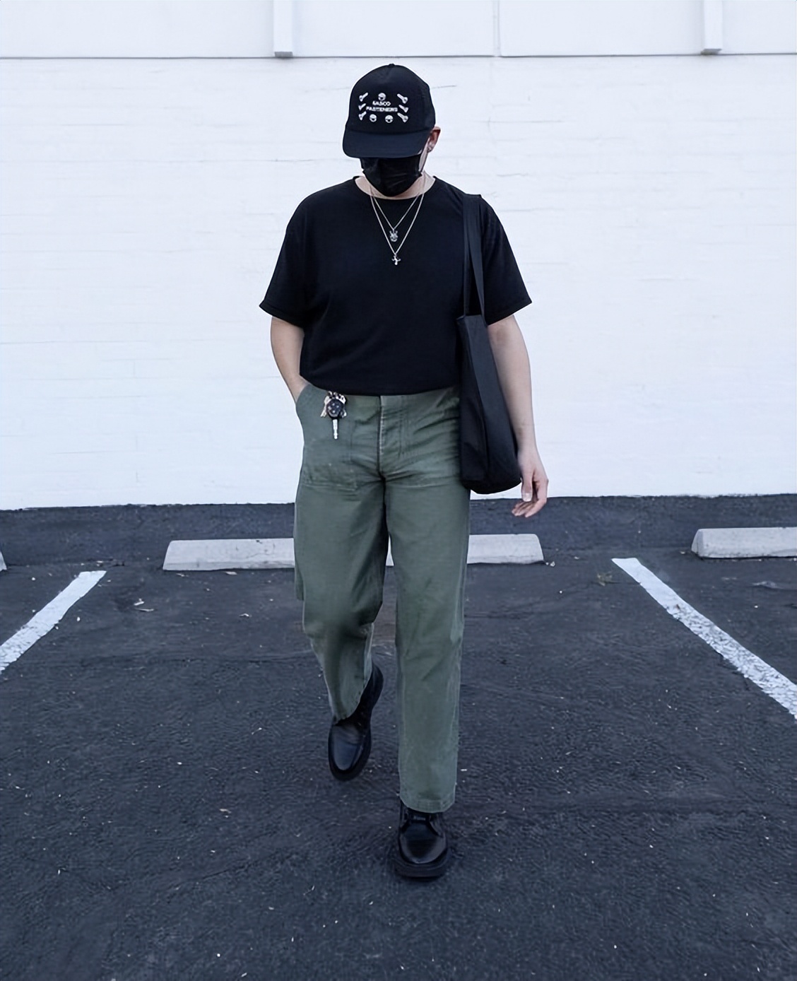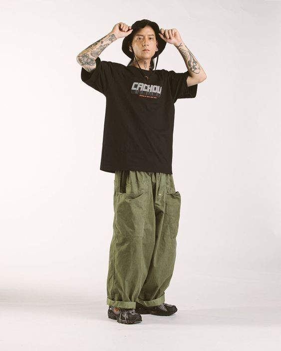 虽然上身没有多大的独特性,但事实上平平无奇的黑色T恤,只要搭配好了裤装,那么造型也不至于穿出路人感,还是很有选择性的。