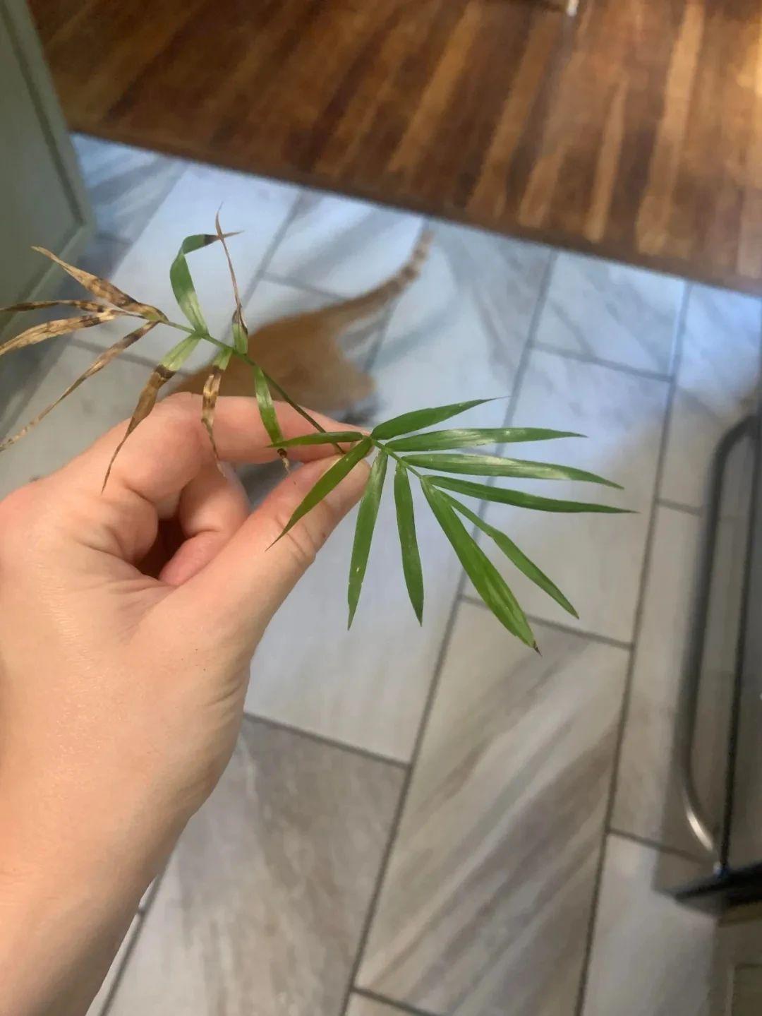 养袖珍椰子叶子老是干枯发黄,枝叶上有小蜘蛛网,很快就要阵亡了。