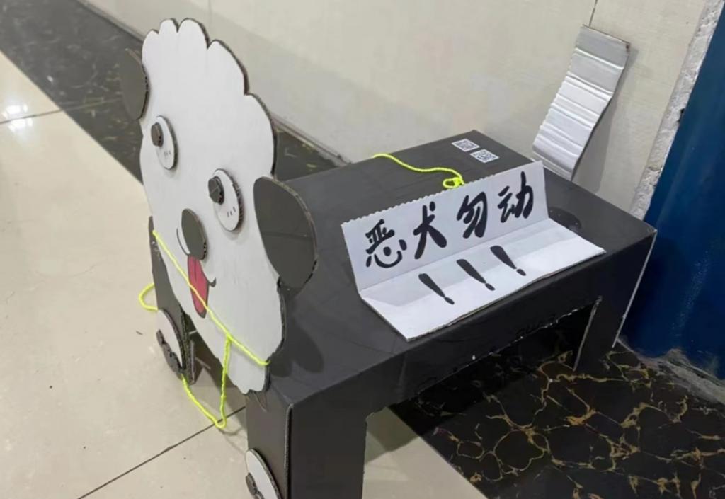 " 因为最近疫情反弹,学校封闭管理,大家的活动被圈定了范围,就希望‘找点乐子’,做做手工。把它放在门口的寝室楼道里,路过的同学都会看到,还有人拍照。" 武汉一所高校的学生表示,看到网上的制作教程,她也和朋友一起制作了小狗," 拴 " 在宿舍门口。
