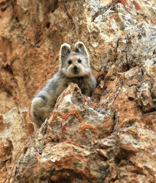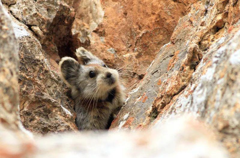 从岩石缝隙中探出了灰色的小脑袋