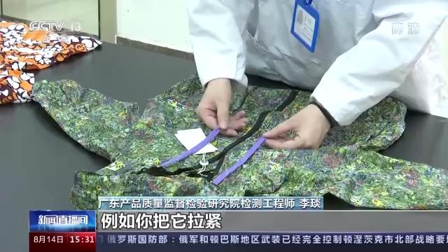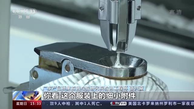 广东产品质量监督检验研究院检测工程师 张兴亚:服装上的细小附件没有达到规定的力值,小孩子很容易用相同的力把它抓下来。如果被误吞或误食,可能导致窒息,甚至危及生命。