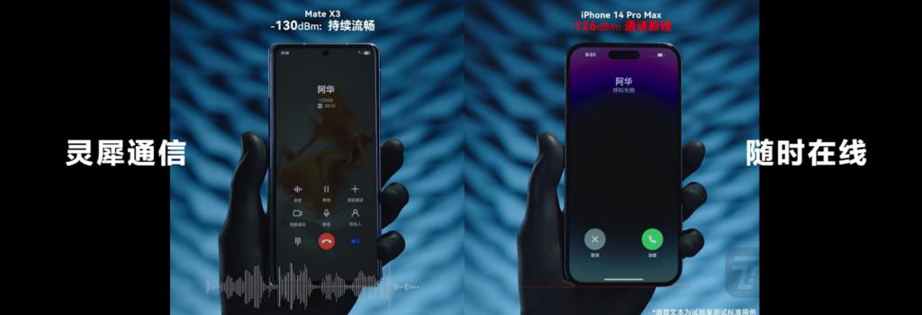 在老本行通信技术上,华为同样给力地做到了跨越式技术创新,通过优化设计将上盖做了一个独立的寄生天线,展开时不影响,闭合后甚至能放大信号。这个名为 " 灵犀天线 " 的黑科技让手机在折叠状态下信号比 iPhone 14 Pro Max 提升 2.1dB。