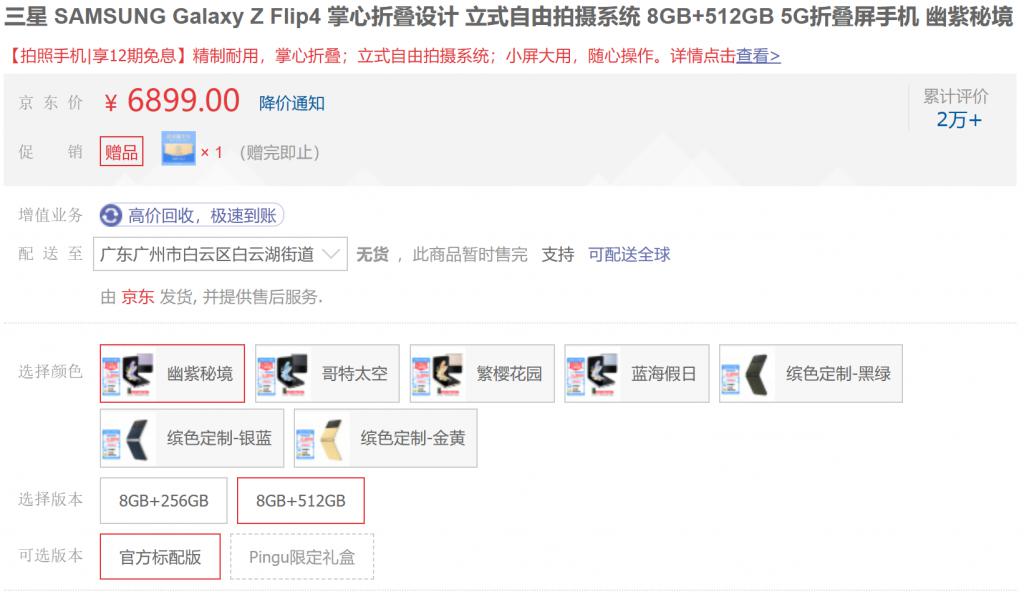 (当前在售的三星 Flip4 拥有 7 种配色,图源:京东)